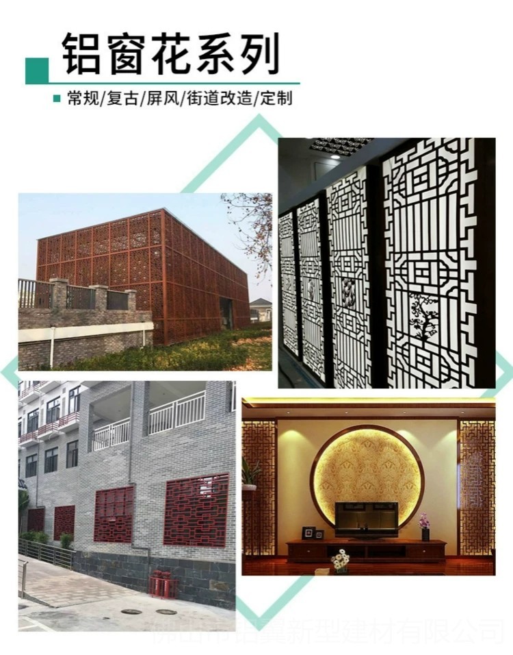 佛山市鋁翼新型建材有限公司,是集研發(fā)、設計、生產、定制及銷售服務為一體的大型鋁單板、鋁窗花生產廠家,注冊資金3180萬元,鋁翼集團工廠總占地面積約30萬平方米,真正的實力廠家,鋁窗花行業(yè)代工廠,自有21臺數(shù)控轉塔沖床,此規(guī)模意味著什么您隨便比比就知道了,品種齊全,按圖可定制生產,接大單急單難單有優(yōu)勢。街道改造及仿古建筑鋁窗花案例多,真正的實力廠家,一手貨源,歡迎對比鋁合金窗花價格優(yōu)勢,歡迎蒞臨公司注冊地考察!